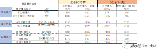 不同类型的签证费用有不同程度的涨幅,基本都在几十刀左右。