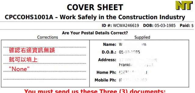 a.护照扫描 (若你选whitecard-QLD还要给JP的人盖章)