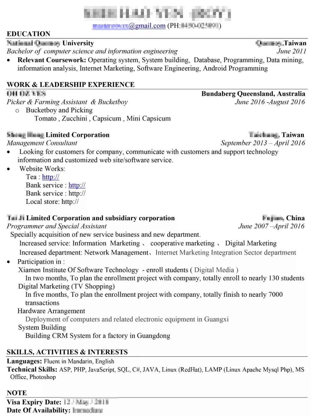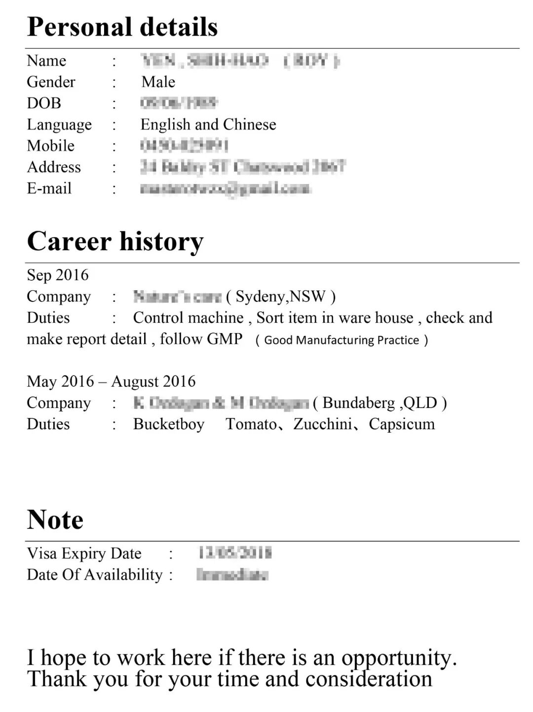 如果你是WHVer的话,找不同的工作,需要适当的调整自己的CV,这样看起来更会有说服力~