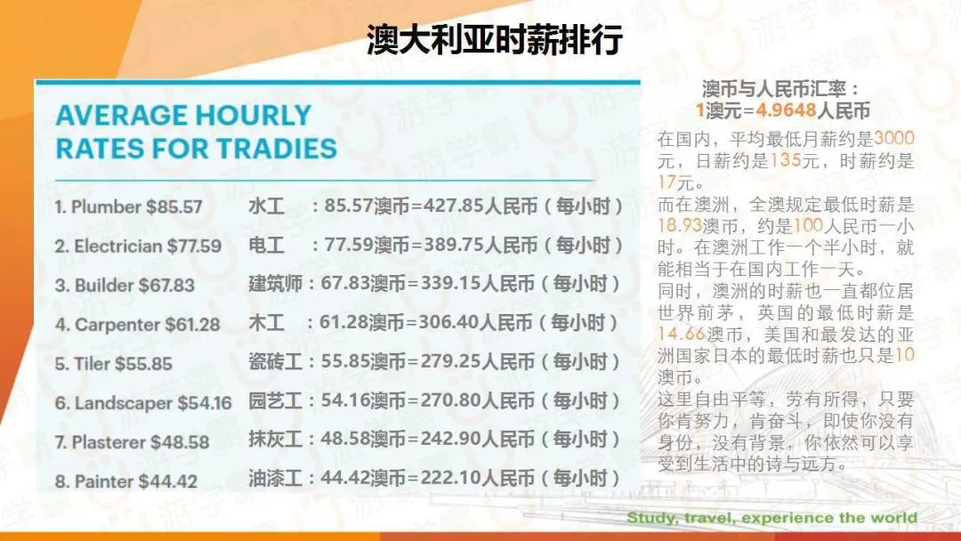 上图中提及到的澳大利亚时薪部分,仅仅是部分高薪职业哦~