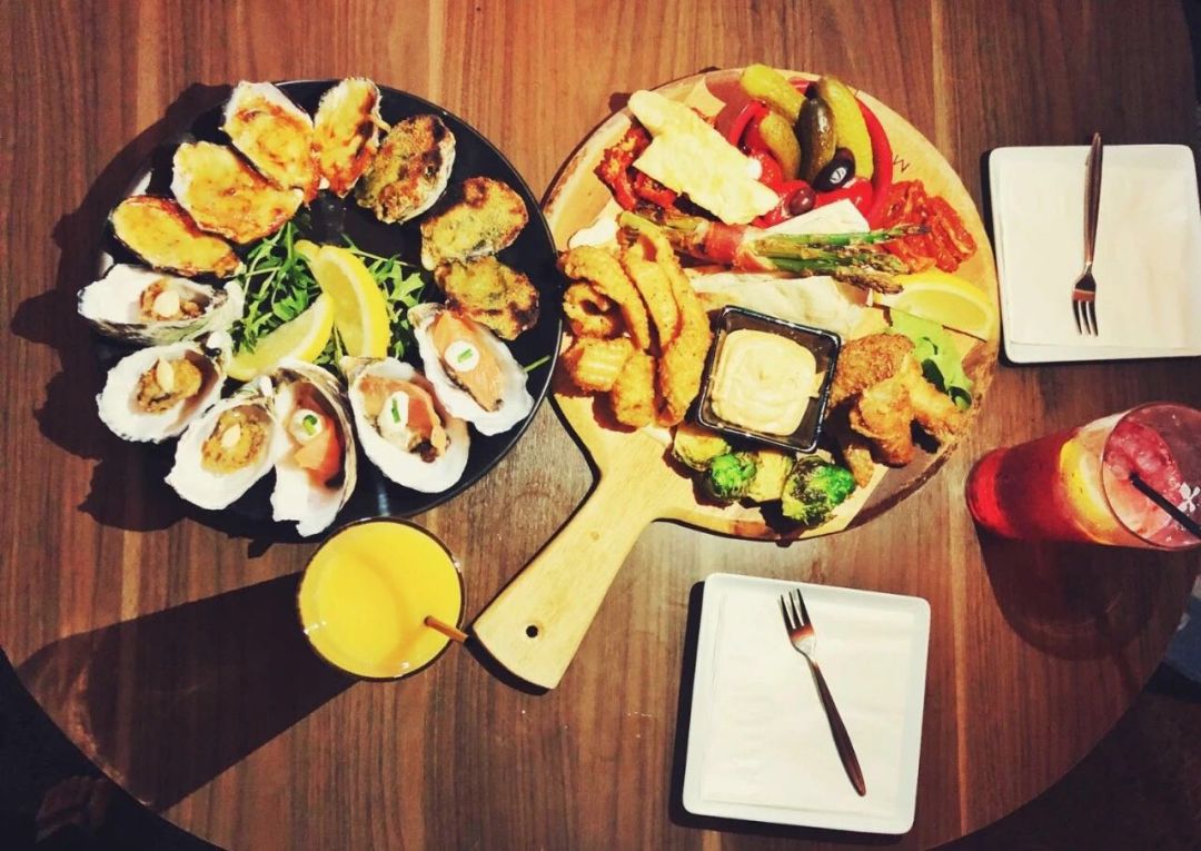 晚上回来后,虽然很疲惫了,但我们两个吃货,还是去打卡了一家生蚝店:Oyster Bar。这真的是我长这么大以来,吃得最好吃的生蚝了。额,请原谅,我一共也就吃过几次生蚝。哈哈~不过,这家生蚝,是我们公认的特别好吃,有9种做法,可随机组合你喜欢的方式。一开始,我们只点了两打生蚝,结果吃了还想吃,又点了一打,真的实力为它打call。