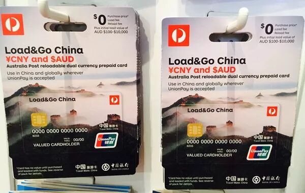 “Load & Go China”人民币/澳币银联芯片卡(卡号以62开头)是澳大利亚邮局发行的首张银联芯片卡。这是一张神奇的卡片,不仅可以存取澳币,还可以存取人民币!