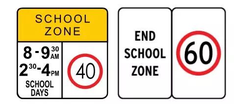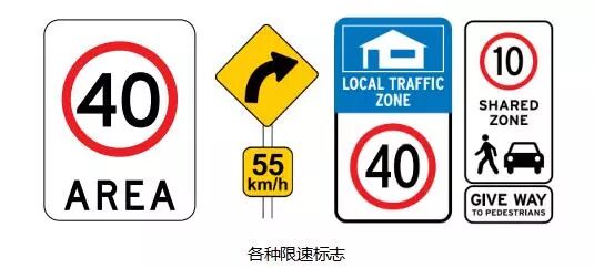 限速:澳大利亚主要的限速标志是白底黑字,黄底黑字,高速路上有黑底红字的电子显示牌标识出道路的限速,意义和国内一样,数字代表最高本路段最高时速限制。如果是在没有限速标识的道路上行驶,则不同的州有不同的要求,以维多利亚州为例:维多利亚州高速路及建成区外的道路限速100km/h,城镇中心道路限速50km/h,乡村道路限速80km/h。