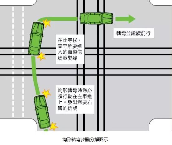 维多利亚州(墨尔本)有一种奇特的转弯方式叫做钩形转弯,标志牌和转弯图示请参考下图,这种转弯方式只有维多利亚州才有,澳大利亚其他州是不存在的。