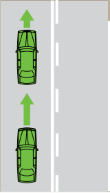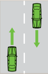 单实线在虚线左侧,表明您可跨压该线进入或离开道路,但禁止超车或调头。