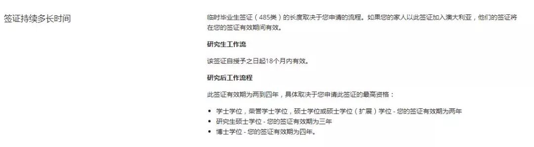 Post-study work stream 学习后工作类别,又称“新485签证”或PSW签证,签证有效期的长度与申请人学历有关。