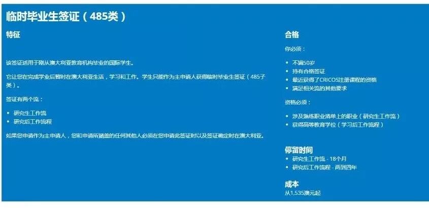 而且,485签证一生人只能申请一次,所以一定要好好珍惜!