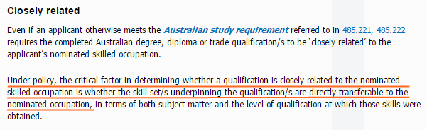 申请人完成的学历与提名职业是否紧密相关非常关键,稍有不慎就会导致签证拒签。根据移民法对于 “紧密相关”做出的定义,只有当所学技能可直接运用于提名职业,且学历等级与提名职业相匹配时才会被认定为”紧密相关“。移民局在评判时会参考ANZSCO的标准。